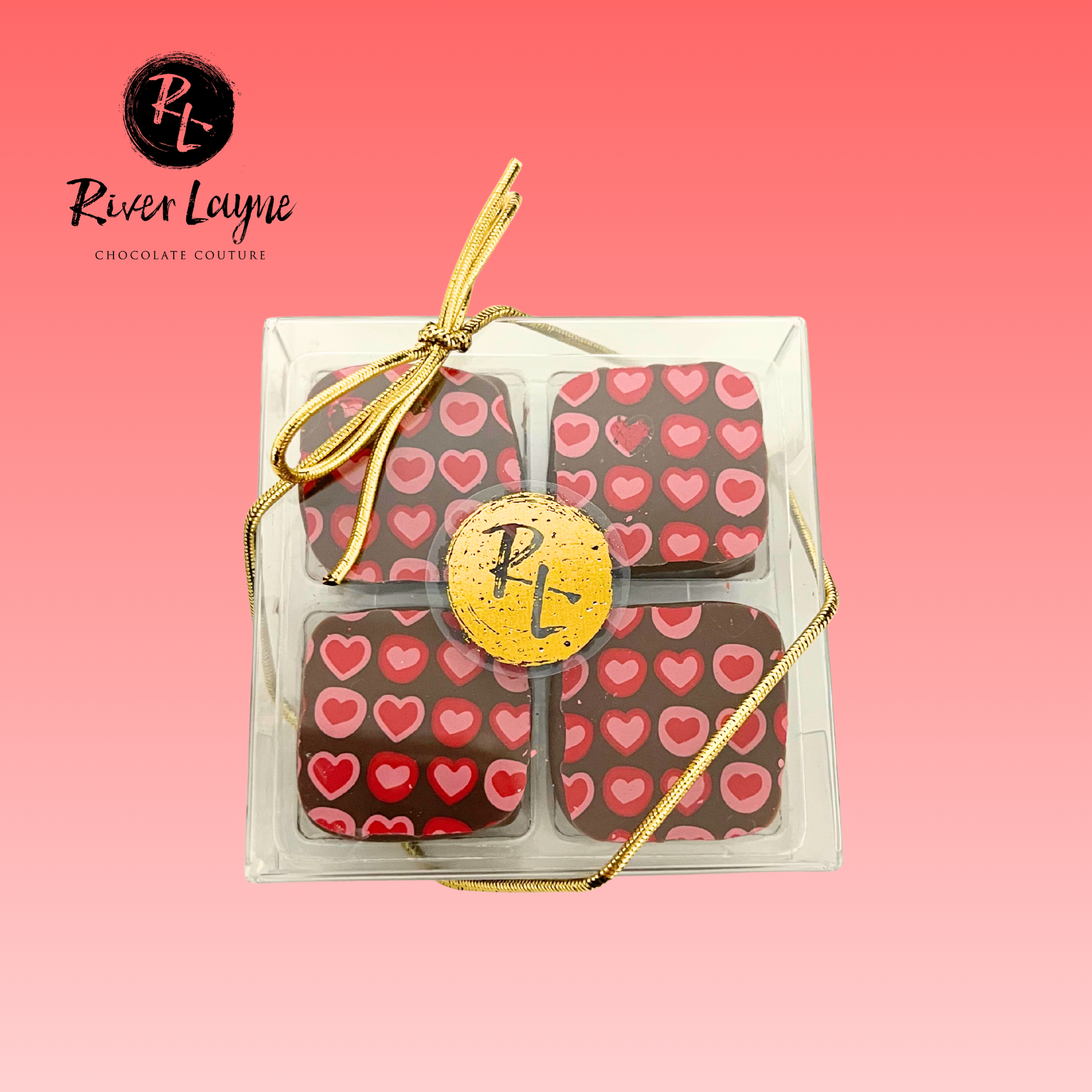 Enjoy the perfect blend of comforting spice and sweet with our four piece Cinnamon Infused Caramels. Each piece is wrapped in couverture chocolate, creating a rich and indulgent taste. The festive holiday design makes these caramels a perfect gift for your loved ones!